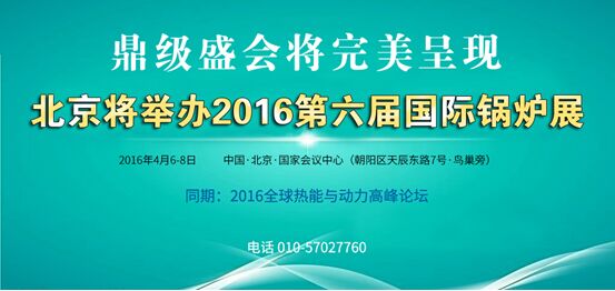 2016第六屆國際鍋爐展即IBE (International Boiler Exhibition)已定於2016年4月6日、7日、8日在中國北京國家會議中心(鳥巢旁)舉辦,屆時全球範圍鍋爐行業的鼎級盛會將完美呈現。