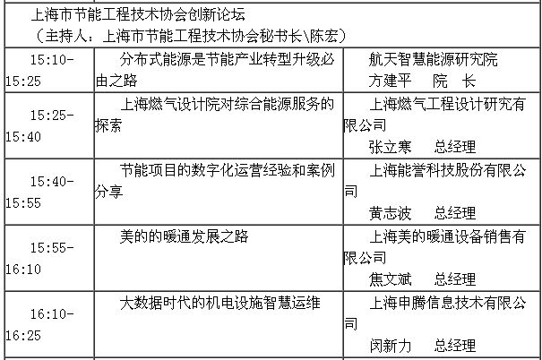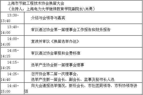 上海市節能工程技術協會換屆大會暨創新論壇 會議議程