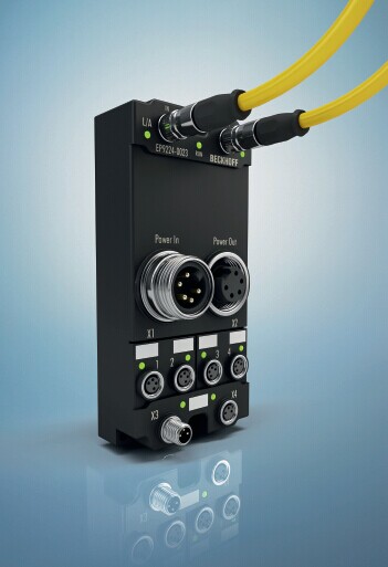 EP9224 智能電源端子盒,除了可以連接四個 EtherCAT 端子盒供電支路外, 還提供了內部電流和電壓測量功能。測量值通過 EtherCAT 傳輸給控製器,同時支持機器和設備的預防性維護以及故障診斷,特別是可以與數據記錄功能一起使用。