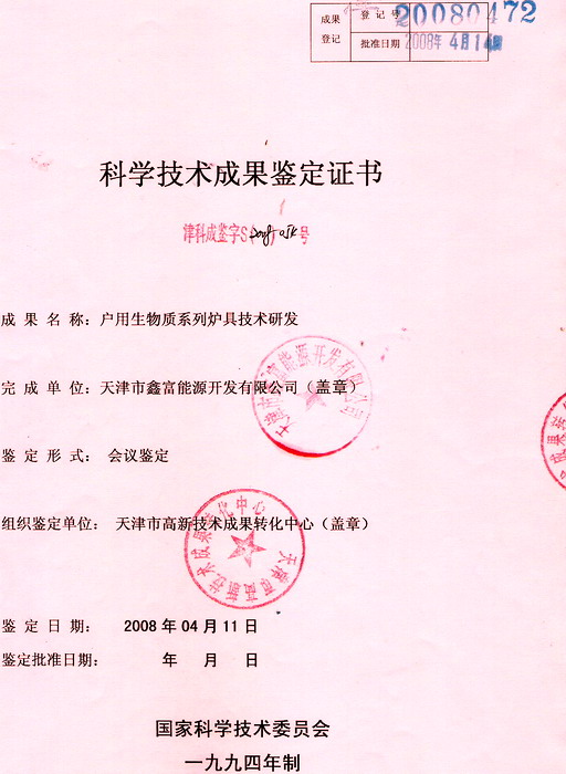 “戶用生物質係列爐具技術研發項目” ,,於2008年4月14日通過天津市科學技術委員會組織的行業權威專家進行的科技成果鑒定,綜合評價為“國內領先”水平。國內多家媒體,對公司先進技術進行了報道。