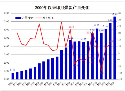 根據印尼能礦部Minerba One Data Indonesia(MODI)的數據,截至2023年12月6日,印尼煤炭產量已達到7.0673億噸。已超過印尼政府今年確定的6.945億噸年度產量目標,達到了目標產量的101.76%,是印尼煤炭產量曆史上首次突破7億噸大關。按此趨勢,全年煤炭產量將達7.6億噸以上。