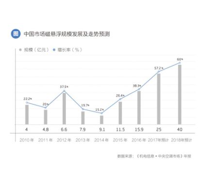 毫hao不bu誇kua張zhang的de講jiang,正zheng是shi憑ping借jie海hai爾er的de一yi己ji之zhi力li,叩kou開kai了le磁ci懸xuan浮fu中zhong央yang空kong調tiao在zai中zhong國guo市shi場chang的de大da門men。可ke喜xi的de是shi,在zai今jin年nian的de中zhong國guo製zhi冷leng展zhan上shang,我wo們men看kan到dao包bao括kuo格ge力li、美的在內超過30家的廠商開始加入到磁懸浮離心機拓展的陣營中。相關機構預測,到2018年底,磁懸浮離心機組在離心機的市場占有率有望接近40%,整體規模達到40億元,未來幾年內,磁懸浮離心機組都將保持60%左右的高增速,迎來徹底的爆發期。