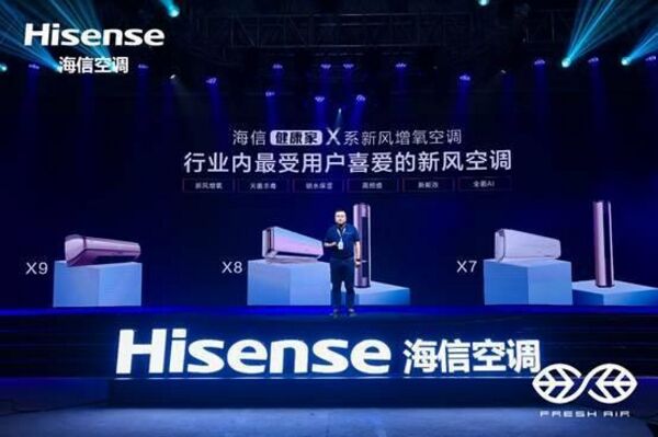 7月22日晚,海信空調夏季全球發布會暨戰略夥伴雲峰會在青島舉行。發布會上,海信新風空調X係產品集體亮相。海信空調副總裁王宏偉表示,隨著2021新冷年開啟,海信空調將施行“四新”策略,並全麵推出PRO版本的X係新風空調,為消費者創造更大價值。
