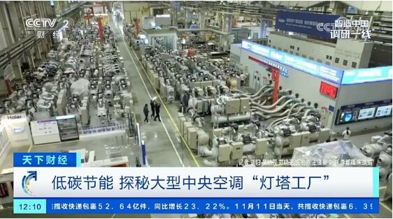11月12日,CCTV-2《智造中國 調研一“線”》欄目走進海爾中央空調互聯工廠,探尋中國第一個“燈塔工廠”背後的綠色低碳秘訣。視頻中,記者在互聯工廠體驗了智能化柔性生產線、行業最大4500RT測試台等諸多領先科技,並走進青島地鐵6號線實地體驗其智慧節能效果,讓用戶直觀感受到“中國智造”綠色低碳方案的引領性。