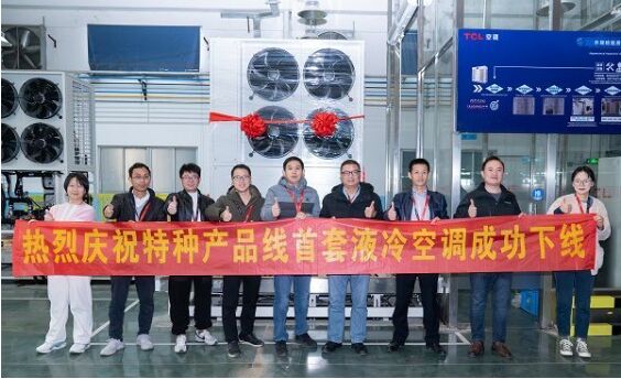 TCL特種空調相關負責人介紹,TCL特種空調儲能溫控75KW液冷機組是TCL空調特種產品線大型液冷係統的首套液冷空調,並在TCL特種空調專機生產線上下線。