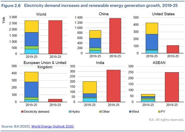 根據國際能源機構(IEA)最新報告,用於發電的可再生能源到2020年將增長7%,與其他燃料形成鮮明對比。盡管全球能源需求將下降5%,但增加並網容量和不斷安裝新項目表明可再生電力強勁增長。