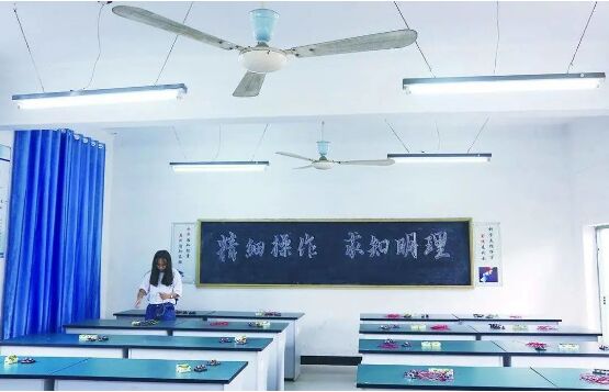 中小學生的近視問題,一直受到社會關注。有數據顯示,江蘇徐州兒童青少年總體近視率約為60%,低視力(裸眼視力低於4.5,且無法矯正)發生率為1%,嚴重影響學生的學習和日常生活。為保障青少年群體視力, 徐州市部分學校開始嚐試使用智能燈光照明設備,以適當亮度讓學生感到舒適,尤其讓眼睛放鬆。 徐州市第三十三中,教室裏新換的LED護眼燈。