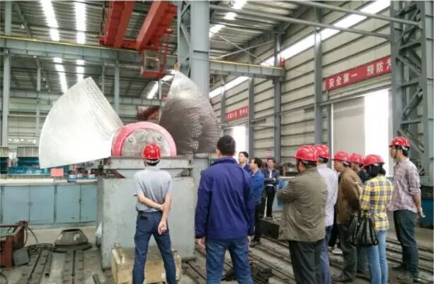 根據工程要求,2016年05月24日召開了該項工程貫流泵機組設備(前3台套)出廠驗收會,我公司對設備設計、工藝、生產和質量控製的情況及監理單位對水泵產品監造過程的工作進行了詳細彙報,與會專家查看了關鍵報告和相關資料,現場抽查了2#葉輪部件的靜平衡試驗和3#葉輪部件與葉輪室間隙尺寸,均符合相關規範,滿足設計要求,驗收合格。5月28日裝車安全發往工地,我公司派工程師前往工地交付與協調相關工作。