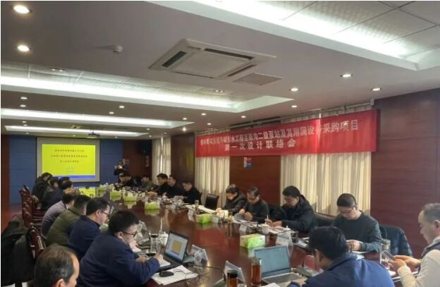 榆林市引黃工程建設管理局、榆林市黃河東線引水工程有限公司、黃河勘測規劃設計研究院有限公司、陝西省水利水電工程谘詢中心與江蘇航天水力設備有限公司就榆林百雨溝二級泵站及其附屬設備的整體結構、主要部件拆裝方式、總體布置方案、水力過渡過程計算、供貨界麵等問題召開了第一次設計聯絡會。會議對航天水力提供的設計文件進行了充分討論,並形成會議紀要。