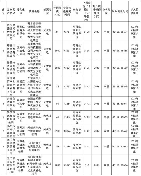 | 國家電網公布2023年第六批可再生能源發電補貼項目名單 |