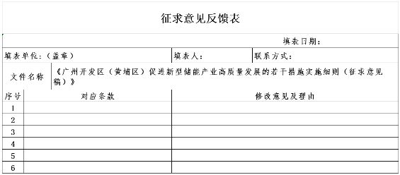 根據《廣州市黃埔區工業和信息化局、廣州市黃埔區發展和改革局關於印發廣州開發區(黃埔區)促進新型儲能產業高質量發展的若幹措施的通知》(穗埔工信規字〔2023〕4號),為便於政策實施,明確相關條款具體內容及操作規範,結合本區實際,區工業和信息化局起草了《廣州開發區(黃埔區)促進新型儲能產業高質量發展的若幹措施實施細則(征求意見稿)》(附件1)。現依據《廣州市黃埔區、廣州開發區行政規範性文件管理辦法》(穗埔府規〔2021〕1號)有關規定,公開向社會征求意見,征求意見時間為2023年9月5日至2023年9月15日。如有意見請填寫《征求意見反饋表》(附件2)並發送至郵箱wangfeiyang@hp.gov.cn,聯係人:王飛陽,聯係電話:82113595。
