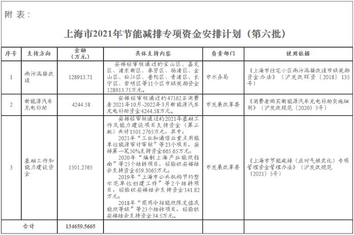 | 上海下達第六批2021年節能減排專項資金安排計劃 |