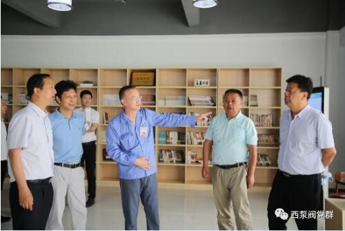 5月28日上午,西安市總工會黨組成員、副主席馮增權、宣教部部長樊民進、機械冶金建材工會主任鄭永獒、陝西省圖書館工會主席、數字資源部主任胡竹林、市總工會幹部高海旭、王海以及西安市職工大學培訓部主任蔣鵬一行,蒞臨西安泵閥總廠有限公司考察調研公司職工書屋綜合體建設情況,公司黨委書記、工會主席楊軍鋒陪同調研。