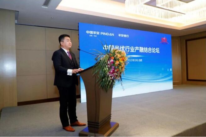 為落實碳中和戰略、發力綠色金融,3月19日,平安銀行聯合中國光伏行業協會在合肥舉辦中國光伏行業產融結合論壇,並聯合協會和平安證券發布《中國光伏行業分析及圖覽(2021)》。本次會議,共有來自國家發改委、行業協會的專家及來自大唐集團、中節能集團、雲南能投、阿特斯、陽光電源、天合光能、特變電工、晶科能源、東方日升、通威集團等20餘家行業頭部企業高管參會。