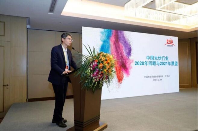 論壇開幕致辭上,平安銀行能源金融事業部總裁朱育強用“使命光榮”、“前景光明”、“綻放光彩”三個詞語來形容光伏行業的發展趨勢。他表示,光伏將是驅動我國能源發展的中堅力量,在我國“碳中和”戰略中承擔更大使命;展望未來,光伏將開啟新的偉大征程,在能源轉型浪潮中扮演更重要的角色;平安銀行堅持以綠色金融促進實體經濟發展的經營導向,將綠色金融提升至戰略層麵,響應國家碳達峰、碳中和目標,大力支持光伏等清潔能源產業發展,提升綠色信貸管理,持續推進綠色金融發展,通過事業部專業化行業化、團金全牌照複雜投融、交易銀行“金融+科技”三大業務特色支持光伏行業健康發展。 主題演講,行業觀點,精彩紛呈 論壇上,中國光伏行業協會王世江秘書長做了題為《2020年中國光伏行業回顧和2021年中國光伏行業展望》的主題演講。王秘書長指出,2020年(nian),國(guo)內(nei)光(guang)伏(fu)電(dian)站(zhan)裝(zhuang)機(ji)規(gui)模(mo)持(chi)續(xu)提(ti)升(sheng),投(tou)資(zi)成(cheng)本(ben)繼(ji)續(xu)下(xia)降(jiang),產(chan)業(ye)集(ji)中(zhong)度(du)快(kuai)速(su)提(ti)升(sheng),技(ji)術(shu)不(bu)斷(duan)發(fa)展(zhan),融(rong)資(zi)規(gui)模(mo)不(bu)斷(duan)擴(kuo)大(da),國(guo)際(ji)化(hua)布(bu)局(ju)不(bu)斷(duan)加(jia)強(qiang);展望2021年,全球光伏市場規模將加速擴大,源網荷儲一體化和多能互補大基地將成為電站開發關注熱點,技術快速迭代,行業將迎來擴產潮,“光伏+”模式帶來更多應用可能性,預計光伏將占據可再生能源增量市場半壁江山。