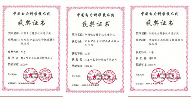近日,雙良節能係統股份有限公司、江蘇雙良冷卻係統有限公司與西安熱工院等聯合申報的《電站空冷係統綜合提效技術及應用》項目榮獲2020年度中國電力科學技術進步獎三等獎。