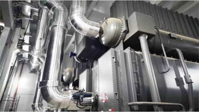 長輸中繼能源站大溫差項目,采用16台60MW溴化鋰吸收式換熱機組降低零次側熱網回水溫度,熱網回水利用電廠或工業餘熱進行加熱,一個采暖期餘熱供熱可實現二氧化碳減排32.75萬噸。