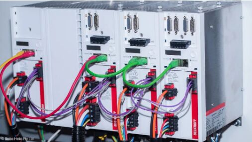 RoboHelix 公司的第二代 RX250 機器需要 25,000 公斤的線性力。Hayel Smair 解釋道:“我們想要基於伺服產品設計一個高精度、性能強大、處理速度快且高效的解決方案。傳統的液壓係統方案比較散亂,無法實現精確控製。”複雜精密的機器中集成了 8 根數控軸,倍福的單電纜技術不僅減少了驅動器和電機的布線工作,而且還縮短了電氣裝配時間。Majumdar 博士補充道:“我們以前的機器中使用的是一台脈衝型運動控製器。每個電機驅動器都有 4 個差分對用於運動控製,4 個差分用於將編碼器反饋發送給 PLC,為 8 個電機設置線路需要花費很長時間。但有了單電纜技術後,隻需簡單點擊,即可使用 AX5000 驅動器和 AM8000 伺服電機。”AS2023 步進電機與 EL7041 步進電機端子模塊一起用於低扭矩電機。