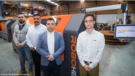 來自 RoboHelix 公司的業務拓展專員 Peter Fahim、電氣和控製部門主管 Budhaditya Majumdar 博士及公司 CEO Hayel Smair 與倍福澳大利亞新南威爾士州辦事處銷售工程師殷博川(從左至右)