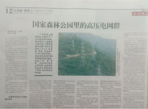 追溯起來,可以說早在2002年,廣東電網公司東莞市供電局就在未經公園同意,也未向公園方提供國家林業、國土資源等部門關於同意在公園內架設高壓線塔的批複文件夾,就擅自違法將多組高壓線塔強行架設在觀音山國家級森林公園內。