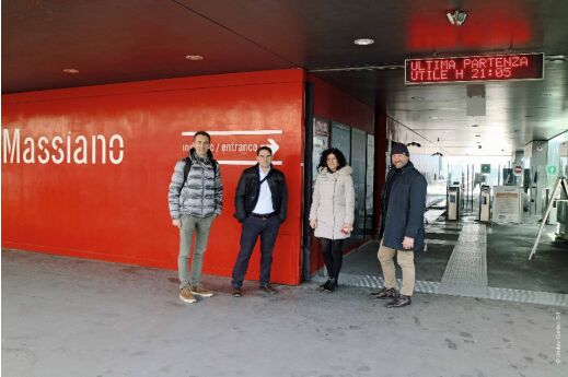 Umbra Control 公司的 Giorgio Passeri、倍福意大利分公司的 Mirko Vincenti、Minimetro 公司的 Monia Mariani 和 Umbra Control 公司總裁 Gianluca Ragni(從左至右)
