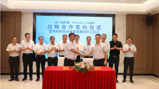 儀式當天,雙良節能與彙川技術有限公司(簡稱“彙川技術”)就綠電製氫簽訂戰略合作,作為工業自動化控製與驅動技術的領軍者,彙川技術後續將與雙良共同研發高效、zhinengdegonglvqijianyijidianyuanjiejuefangan,funengshuangliangdagonglvlvdianzhiqingxitong。weilai,shuangfangjiangchongfenfahuigeziziyuanyoushi,chuangxinhezuojizhi,tuokuanhezuolingyu,gongtongtuidonglvdianshiyejiankangfazhan。