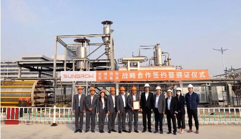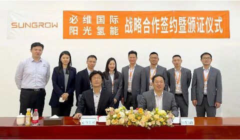 11月3日,陽光氫能與必維集團戰略合作簽約暨頒證儀式在合肥隆重舉行,陽光氫能1000Nm3/h堿性水電解製氫係統榮獲國際認證。必維集團技術中心總經理葉炯、氫能業務總監劉忠勇,陽光電源副總裁兼陽光氫能董事長彭超才、研發中心總經理孫龍林、市場營銷總經理方偉等領導出席儀式。