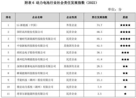 《企業社會責任藍皮書》由中國社會科學院社會責任研究中心編製,是目前中國企業社會責任領域最具影響力的研究成果。“企業社會責任發展指數(2022)”基於“通用指標+行業特色指標”評價體係,以企業性質、所在行業為劃分標準,對企業社會責任信息進行內容及定量分析的指數評價。LG新能源在綠色管理、綠色生產、綠色運營的環境責任版塊,夥伴、員工、社區的社會責任版塊,責任管理的責任融合版塊,以及本質責任的客戶責任板塊摘取八項最高評分,總評分名列榜首。此次排名的蟬聯及獎項的殊榮,既是對LG新能源在社會責任領域取得成效的有利認可,也是對LG新能源作為動力電池行業的領軍企業,在可持續發展和綠色產能方麵做出貢獻的肯定。