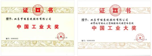 2016年榮獲 “中國工業大獎”企業獎 ,2020年榮獲 “中國工業大獎”項目獎,四年兩次榮獲由國務院設立的中國工業最高獎項。