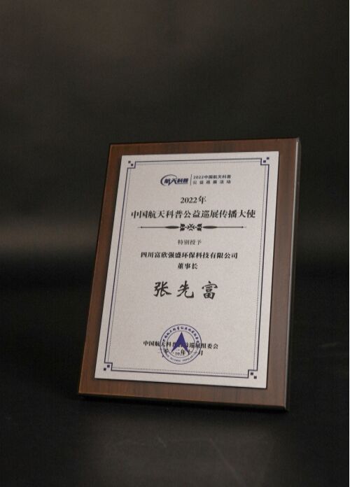 2022年11月30日,四川富欣強盛環保科技有限公司董事長張先富受邀為2022年中國航天科普公益巡展傳播大使,在中央電視塔中國航天科普主題展區參加航天科普公益巡展活動。