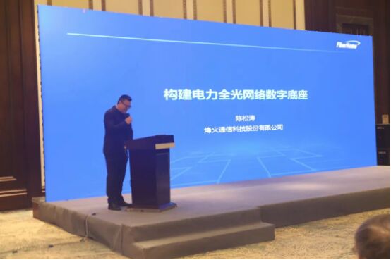 會上,烽火通信光傳輸產品線總監陳鬆濤以《構建電力全光網絡數字底座》為主題發表演講。