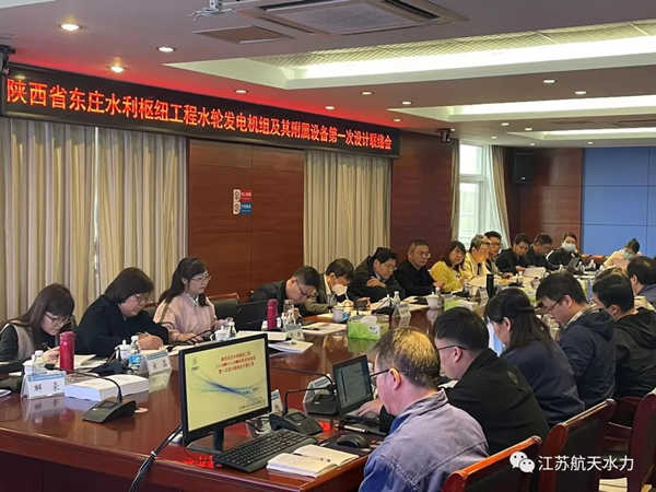 陝西省東莊水利樞紐工程建設有限責任公司、陝西省水利電力勘測設計研究院與江蘇航天水力設備有限公司就東莊水利樞紐水輪發電機組的整體結構方案、供貨界麵等問題召開了第一次設計聯絡會。與會代表進行了充分討論確認,並形成會議紀要。