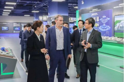 4月6日,德國萊茵TüV集團(以下簡稱“TüV萊茵”)全球產品服務執行副總裁Kimmo Fuller一行赴正泰新能源杭州園區走訪交流。正泰新能源董事長兼總裁陸川熱情接待。