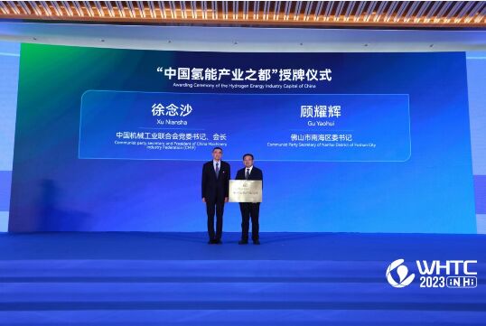 在本屆開幕式上舉行了“中國氫能產業之都”授牌儀式,中國機械工業聯合會黨委常委張克林宣讀《關於授予佛山市南海區“中國氫能產業之都”稱號的決定》。徐念沙向佛山南海區區委書記頒發“中國氫能產業之都”榮譽稱號。