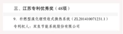 6月15日,江蘇省人民政府發布《省政府關於公布首屆江蘇專利獎的決定》,雙良節能係統股份有限公司憑借“補燃型溴化鋰吸收式換熱係統”喜獲“江蘇專利優秀獎”。該獎項的獲評代表了江蘇省知識產權主管部門對雙良節能專利成果的高度認可,也是對雙良節能持續投入研發創新和實施知識產權保護運用的充分肯定!