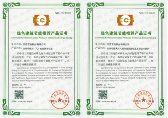 近日,經中國工程建設標準化協會綠色建築節能產品專家委員會審查、評定,江蘇雙良鍋爐有限公司(簡稱“雙良鍋爐”)研發生產的全自動燃油(氣)真空熱水機組、全自動燃天然氣模塊組裝超低氮水管熱水鍋爐,符合相關要求,再度被授予“綠色建築節能推薦產品證書”,在工程建設領域推薦使用。