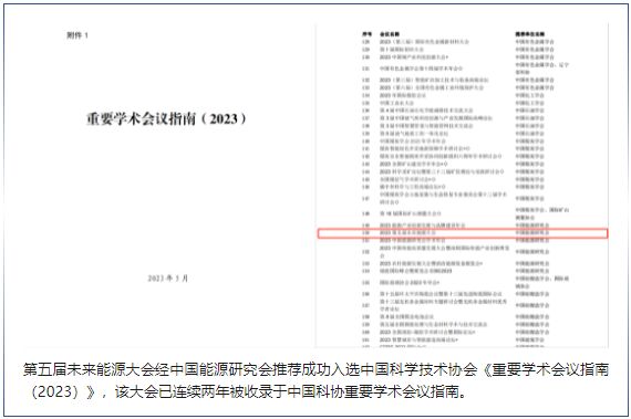 第五屆未來能源大會經中國能源研究會推薦成功入選中國科學技術協會《重要學術會議指南(2023)》,該大會已連續兩年被收錄於中國科協重要學術會議指南。
