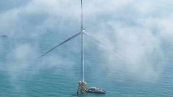 台風“杜蘇芮”過境期間,與首台16MW機組同風電場的4台金風科技機組,在項目建設期間已吊裝、未上電情況下,借助智能台風預警係統提前預測與規劃窗口期,並通過自主研發的“遠程通信抗台控製係統”智能調控機組狀態,也成功平穩應對台風過境。
