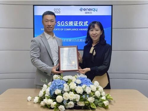 近日,國際公認的測試、檢驗和認證機構SGS為深圳市盛能傑科技有限公司(以下簡稱"盛能傑")的光伏並網儲能逆變器頒發"SGS北美認證(SGS NA Listed Mark)"證書。SGS消費電子產品事業部華南區總監鄭凱先生、盛能傑總經理任莉娟女士及雙方重要嘉賓出席了本次頒證儀式。此項證書的獲得標誌著盛能傑並網儲能逆變器產品的安全性、可靠性和性能符合UL 1741的相關嚴格標準要求,在全球範圍內具有極高的認可度,有效助力盛能傑拓展全球市場。