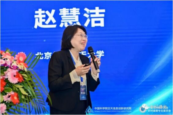 北京航空航天大學趙慧潔發表《星載高光譜全鏈路建模和數據不確定性分析》的主題演講,考慮複雜地表的影響,建立精細的大氣校正模型,研發星載高光譜遙感全鏈路數字仿真軟件平台,建立高光譜地物反射率的不確定傳遞模型,研製了高光譜室內遙感室內全要素成像仿真裝置。