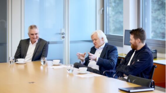 Hans Beckhoff(中間)和 Martin Rostan(左)回顧 EtherCAT 技術過去 20 年的發展曆程並與代表下一代管理層的 Johannes Beckhoff(右)分享了他們多年積累的經驗