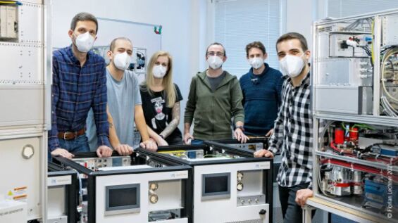 Ionicon 公司專家團隊(從左至右):Lukas Märk(CEO)、Gabriel Ivanko(技術人員)、Judith Bobory(技術人員)、Simon Niederbacher(客戶支持與服務)、Stefan Haidacher(機電一體化實習生)