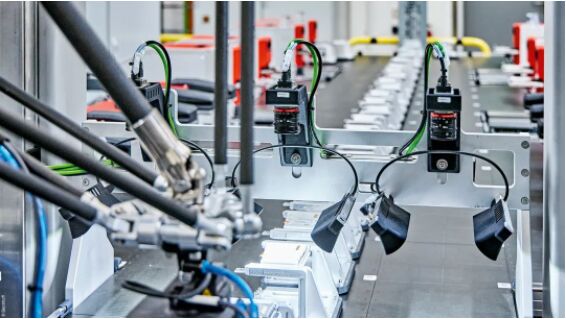 橫立於三條通道上的視覺係統,會在每個端子模塊通過時捕捉其 DataMatrix 碼,然後將其與 XPlanar 動子的 ID 聯係起來。