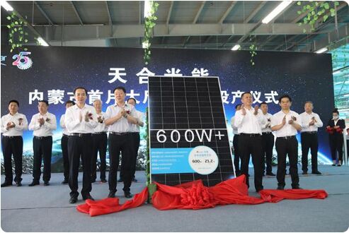 據悉,天合光能項目2022年3月開始籌建,7月9日開始機電施工。在準格爾旗委、政府的大力支持下,在天合團隊及設備廠家的共同努力下,各項工作有序展開,僅用21天時間就全線打通全自動化生產線,實現了首塊大尺寸組件的成功下線。本次投產的大尺寸組件將全部用於生產天合光能600W+至尊係列組件,產品采用天合光能自主創新研發的多主柵技術,疊加無損切割、高密度封裝等先進技術,在發電效率和產品可靠性方麵處於行業領先位置。