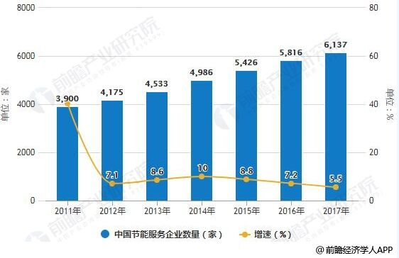 數據來源:前瞻產業研究院整理 2011-2017年中國節能服務企業數量統計及增長情況
