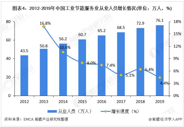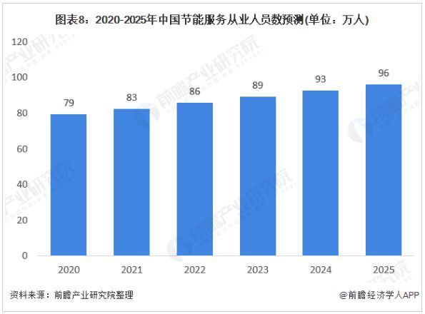 2019年EMCA的數據顯示,全國從事節能服務產業人員從2012年底43.5萬人增長到76.1萬(wan)人(ren)。未(wei)來(lai),隨(sui)著(zhe)節(jie)能(neng)服(fu)務(wu)產(chan)業(ye)規(gui)模(mo)的(de)不(bu)斷(duan)擴(kuo)大(da),從(cong)業(ye)人(ren)員(yuan)將(jiang)呈(cheng)現(xian)逐(zhu)漸(jian)增(zeng)多(duo)的(de)趨(qu)勢(shi),但(dan)隨(sui)著(zhe)行(xing)業(ye)對(dui)從(cong)業(ye)人(ren)員(yuan)門(men)檻(kan)的(de)提(ti)高(gao),增(zeng)速(su)仍(reng)將(jiang)繼(ji)續(xu)放(fang)緩(huan)。預(yu)計(ji)2020年,全國節能服務產業從業人員將達到79萬人,2025年,全國從事節能服務產業人員將超過96萬人。
