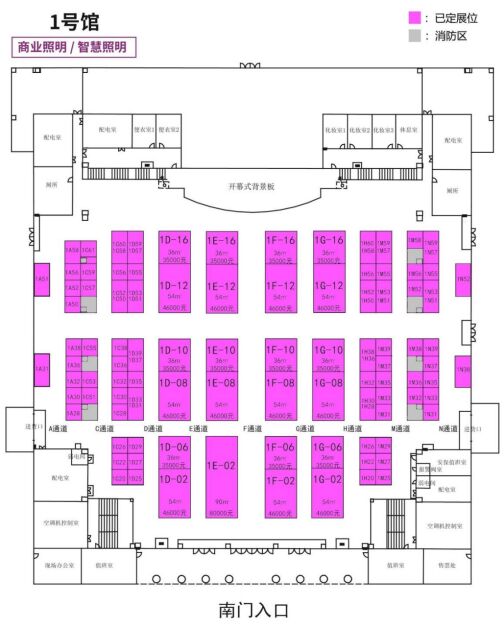 南門入口即為兩個180㎡的超大展台