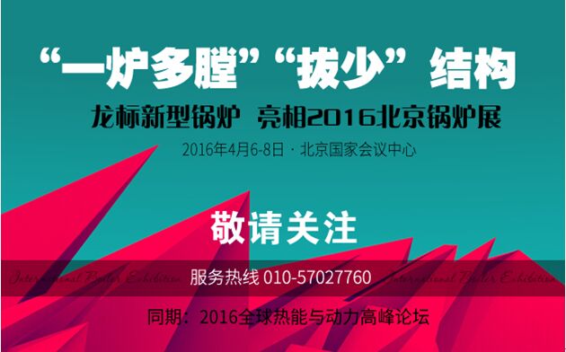 2016第六屆北京鍋爐展(中國國際環保鍋爐及配套設備展覽會)(簡稱IBE),由中國低碳產業協會環保鍋爐委員會發起;北京市商委特批;環保部、工信部、發改委、北京市人民政府四大部委支持;擬邀8家行業權威組織機構:中國特種設備檢測研究院、全國鍋爐壓力容器檢驗協會、全國機械工程學會、上海壓力容器協會、台北市鍋爐壓力容器協會以及北京市環保局等聯手參與;中央電視台、北京電視台、山東電視台、廈門衛視、河北電視台等近30家一流媒體及近100家行業網絡媒體現場采訪報道;2萬平米展出麵積,600餘家優秀廠家、3萬專業觀眾即將於2016年4月6日到8日集聚國家會議中心(鳥巢旁)。