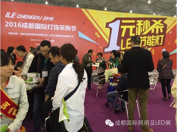 (三)2016成都國際燈飾采購節,燥熱了整個成都 由組委會聯動成都市各大燈飾市場聯動打造,4月8至10日期間,成都新會展中心9號館設為采購節主場,金府燈具城、八益燈飾城、量力燈具城等為分會場,來自四川省內二級市場及重慶等地區的70餘個參觀團,在主會場與分會場之間免費搭乘大巴車穿梭參觀,主會場舉辦的一元秒殺LED燈活動,火爆現場,由潤欣照明、彙源光電提供的燈飾在現場被搶購,兩天5000盞LED燈,全部搶光!全城燈飾钜惠,年度最大折扣給了采購商最大驚喜,眾多采購商紛紛表示,真是來對了。