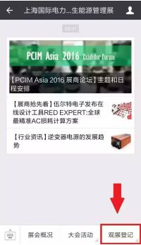 第15屆PCIM上海國際電力元件、可再生能源管理展覽會即將於2016年6月28至30日在上海世博展覽館盛大開展! 承襲德國紐倫堡一年一度的 PCIM歐洲展覽會的專業導向,在中國,PCIM Asia(電力轉換與智能運動的英文縮寫)為(wei)來(lai)自(zi)電(dian)力(li)電(dian)子(zi)產(chan)品(pin)及(ji)其(qi)驅(qu)動(dong)技(ji)術(shu)和(he)變(bian)電(dian)質(zhi)量(liang)應(ying)用(yong)界(jie)的(de)廣(guang)大(da)專(zhuan)業(ye)人(ren)士(shi)提(ti)供(gong)了(le)一(yi)個(ge)良(liang)好(hao)的(de)交(jiao)流(liu)平(ping)台(tai),使(shi)他(ta)們(men)有(you)機(ji)會(hui)領(ling)略(lve)電(dian)力(li)電(dian)子(zi)產(chan)品(pin)和(he)係(xi)統(tong)領(ling)域(yu)的(de)最(zui)新(xin)研(yan)發(fa)成(cheng)果(guo),從(cong)功(gong)率(lv)半(ban)導(dao)體(ti)、被動元件、散熱產品、新材料、傳感器到伺服技術和廣泛的電能品質和能源管理係統。 PCIM現已開通微信預登記功能,不再需現場排隊填寫表格,隻需手機一點,即可登記,現場還有好禮相送,您還在等什麼?!趕緊拿起手機登記參與吧! 具體操作流程: ①長按識別二維碼或關注“PCIM_Asia”